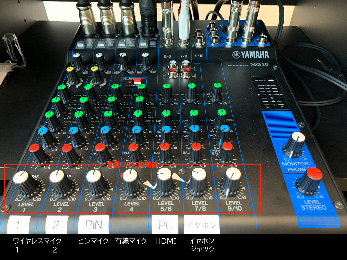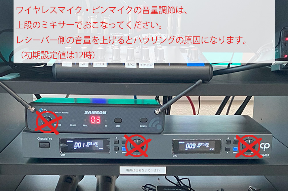 ワイヤレスマイクに電波干渉がある場合は、有線マイクで代用ください。